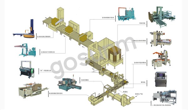 本流水線所用到的產(chǎn)品包括:自動(dòng)發(fā)料、自動(dòng)封切、自動(dòng)收縮、自動(dòng)開箱機(jī)、自動(dòng)裝箱機(jī)、稱重機(jī)、實(shí)時(shí)打印貼標(biāo)機(jī)、全自動(dòng)折蓋封箱機(jī)、全自動(dòng)四角邊封箱機(jī)、工字型捆扎機(jī)、碼垛系統(tǒng)、全自動(dòng)棧板打包機(jī)、全自動(dòng)穿劍式捆包機(jī)、全自動(dòng)水平式捆扎機(jī)、自動(dòng)頂部覆膜機(jī)、在線式纏繞機(jī),其中機(jī)械可配套流水線使用,亦可單機(jī)作業(yè)。