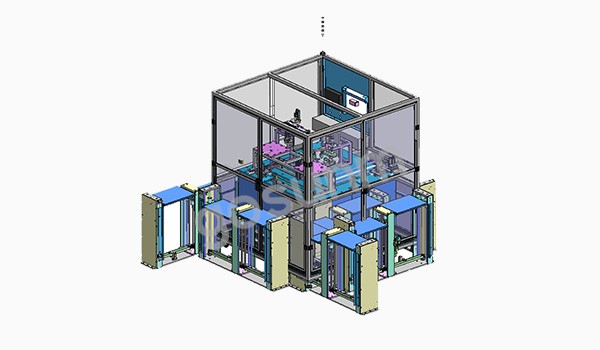 儲料倉放料--自動下料至磨邊機構(gòu)(使所有長度一致)--吸風機構(gòu)吸塵--自動圓周貼標--自動覆標--自動下料